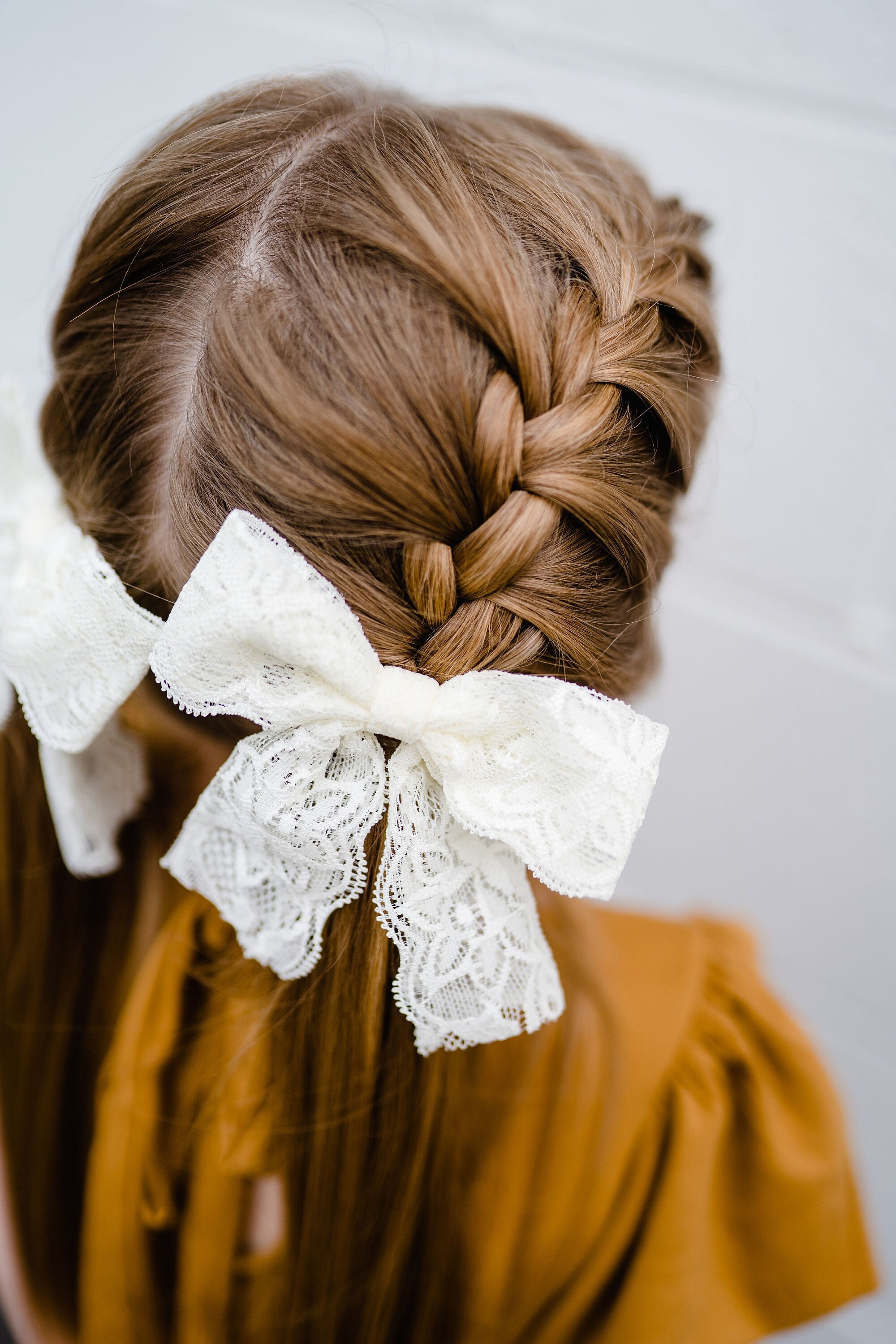 Amazon Com Off White Lace Large Hair Bows For Girls Cute Hair Ties Hair Accessories For Wedding Party Beach School Baby Teen Girl Fabric Stuff Butterfly Toddler Hair Clip Decor Hair Scrunchies Hair